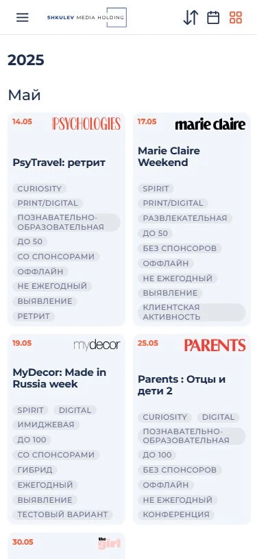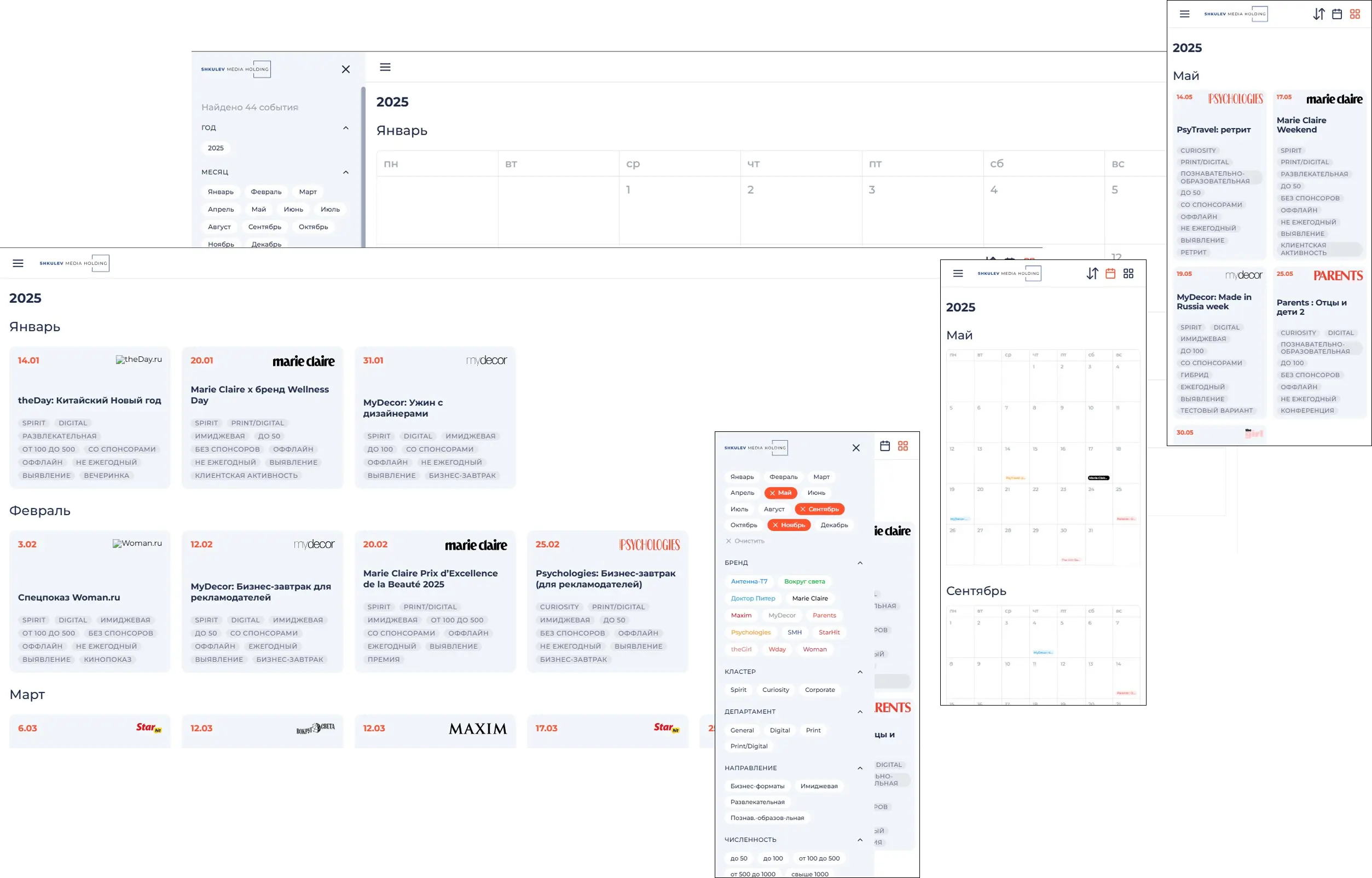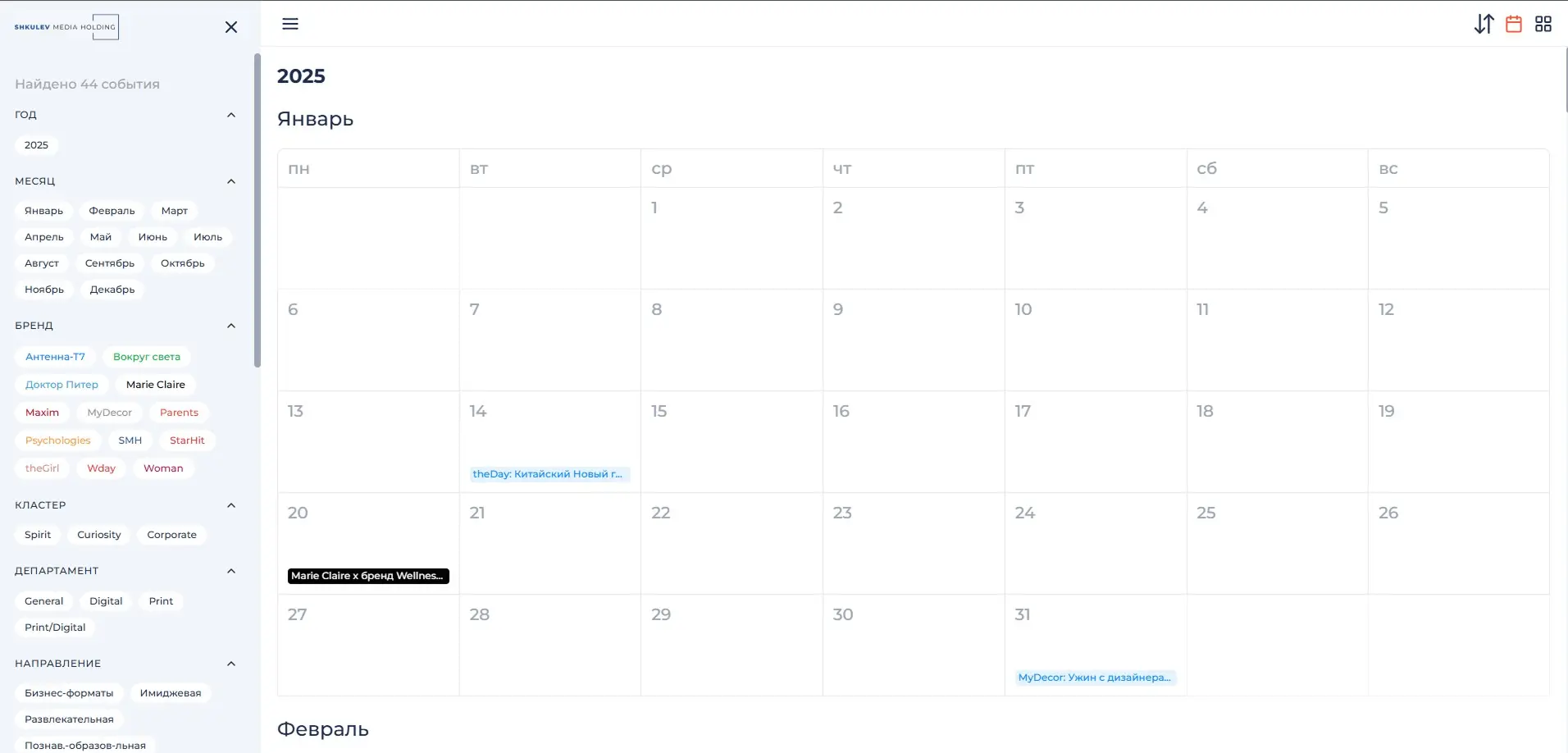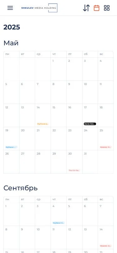 Календарь событий медиахолдинга.