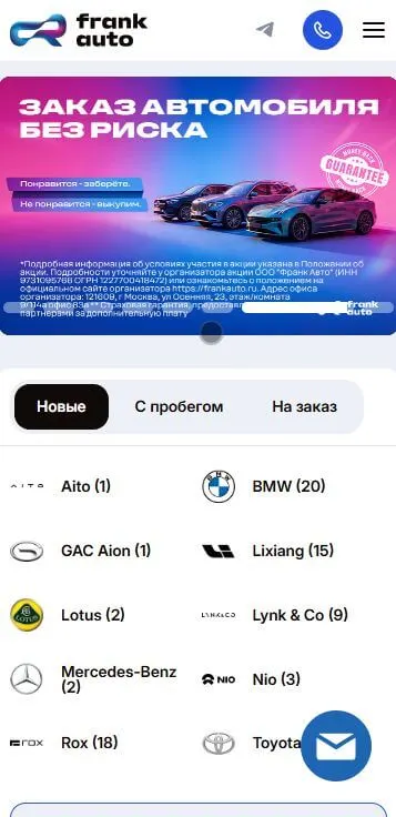 Лендинг российского представаительства магазина автозапчастей.