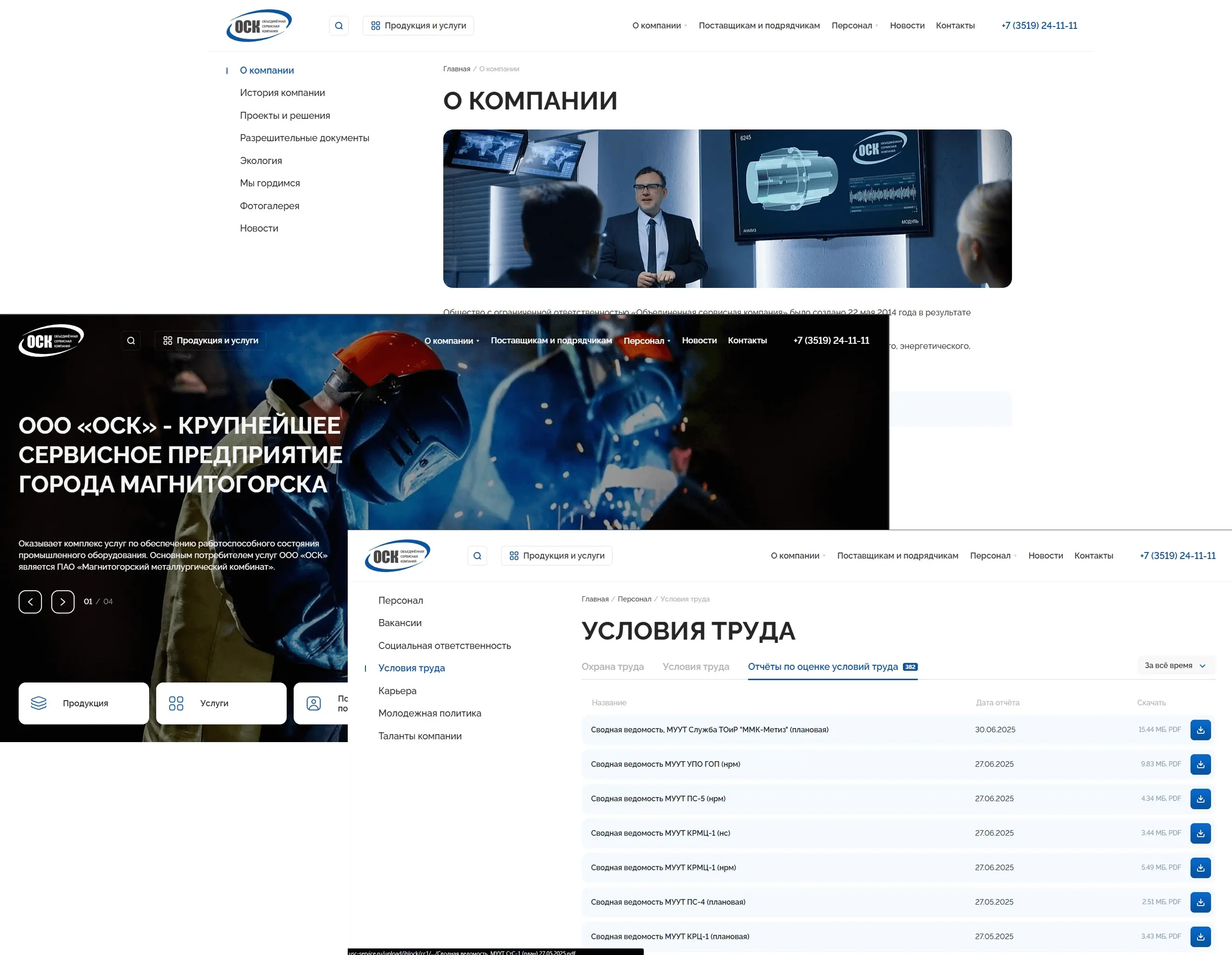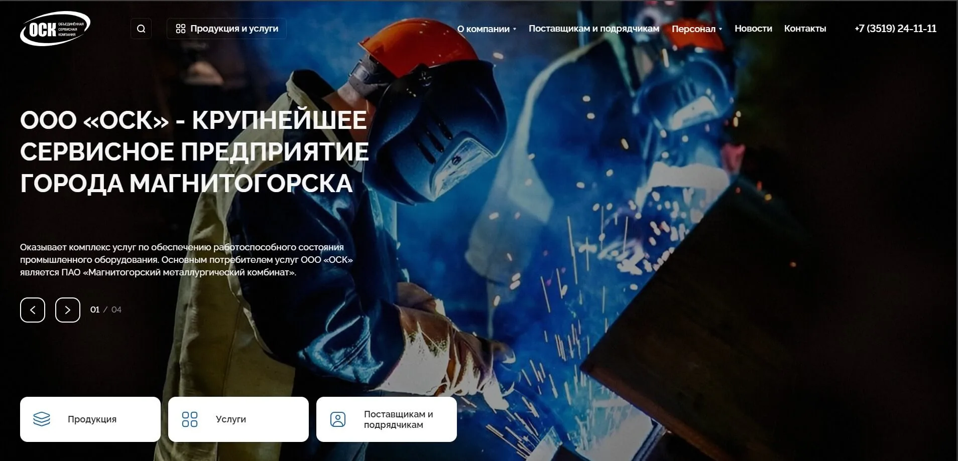 Сайт компании ОСК (Объединенная сервисная компания) занимающейся проектированием, изготовлением, монтажом, наладкой, обслуживанием и ремонтом оборудования промышленных предприятий.