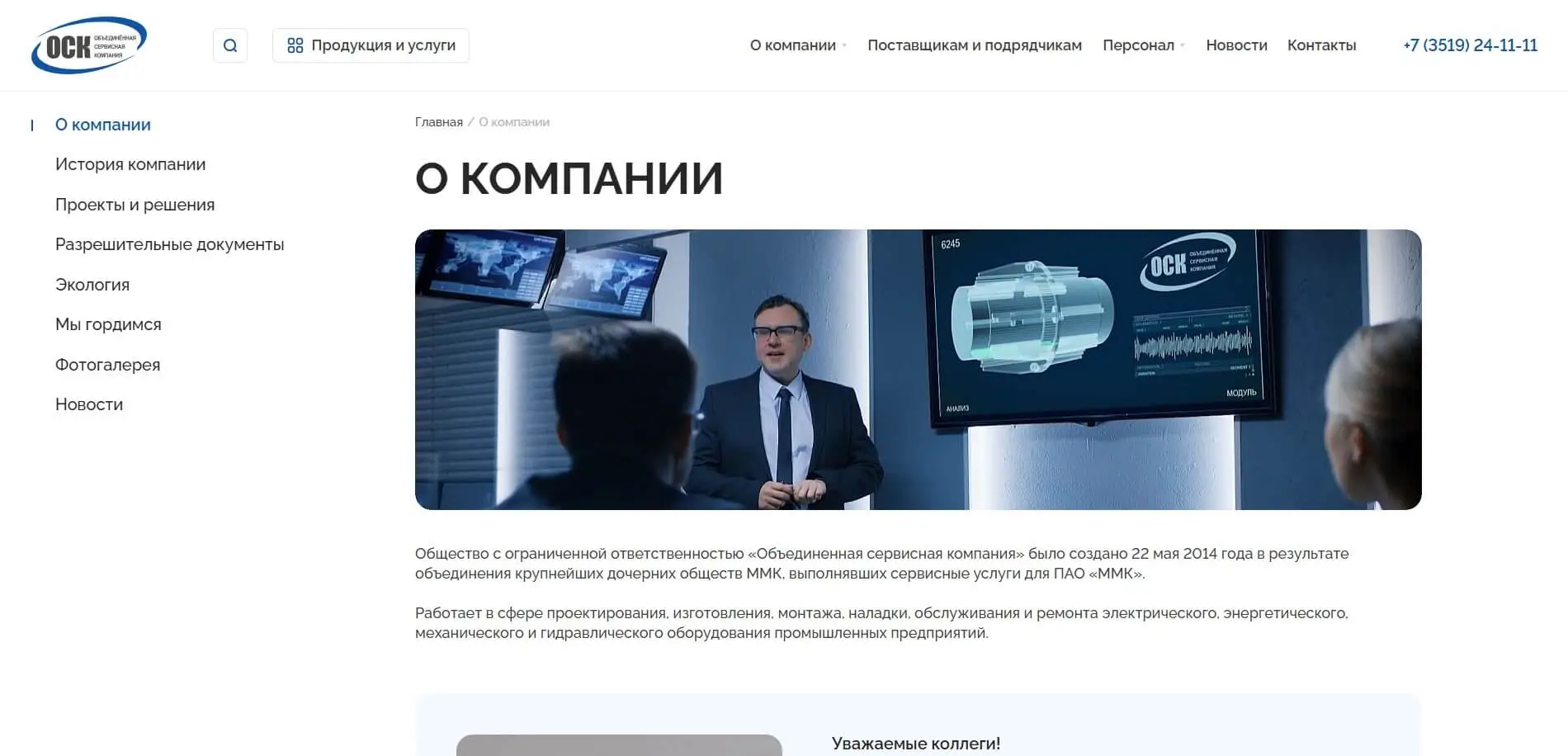 Страница О компании