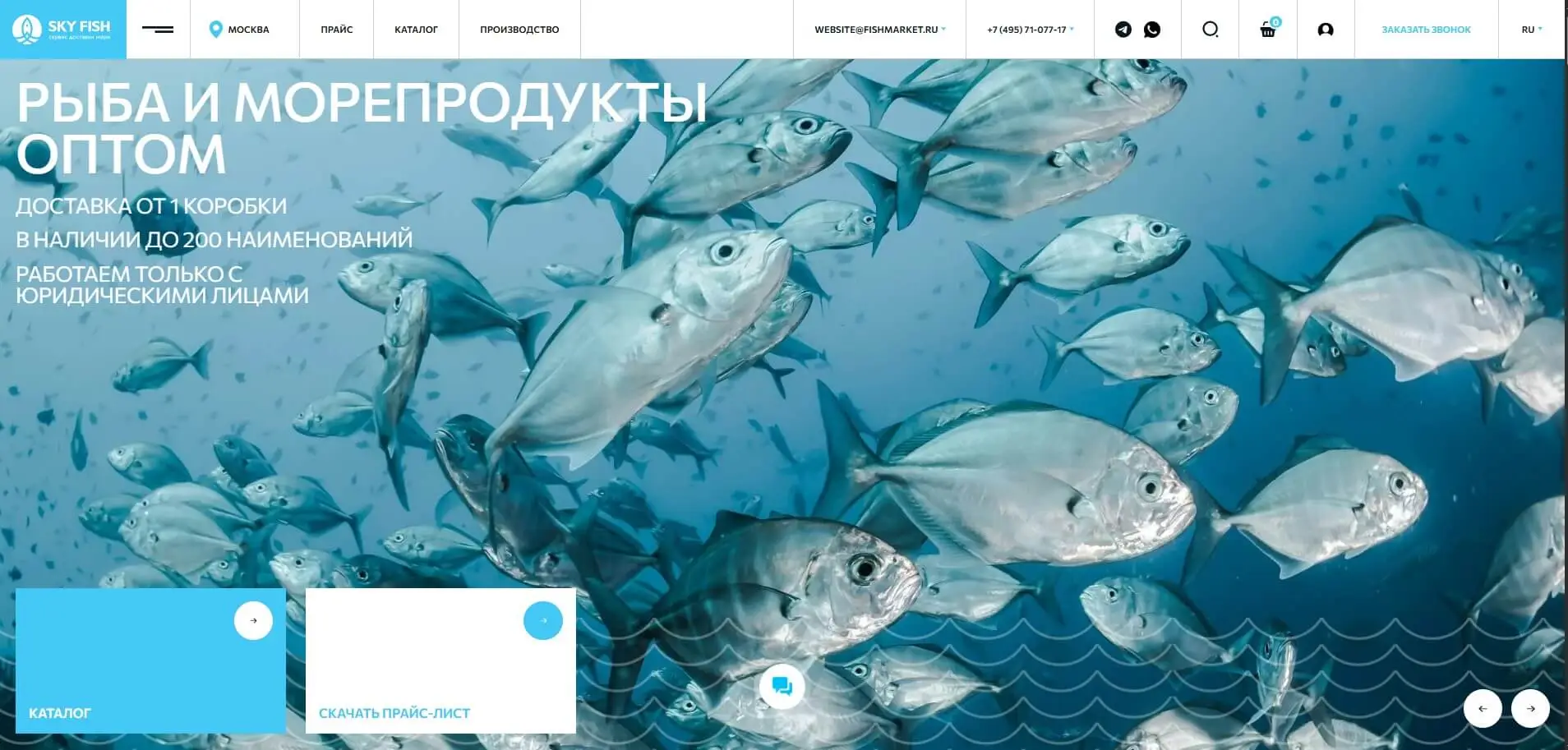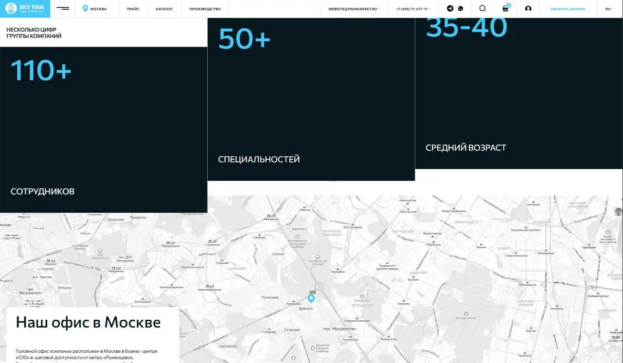 Сайт компании добывающей продающей морепродукты.